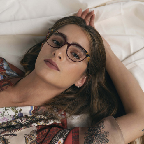 Gafas para mujer de estilo mariposa que ofrece una montura actual que garantiza una mirada confiada y un estilo distintivo. El modelo Agnes encarna la feminidad y la elegancia.