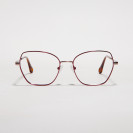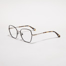 Montura para mujer de forma geométrica de metal con recubrimiento ecológico. Atractivos terminales de acetato orgánico con ventana. Unas gafas que le dan un plus a cualquier look gracias a su diseño atemporal, su armonía y sencillez.